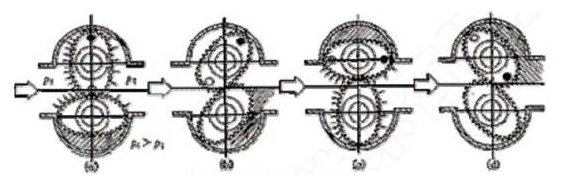 橢圓齒輪流量計(jì)工作原理圖: