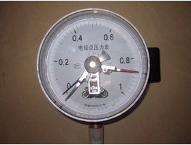 儀表的工作原理是基于測(cè)量系統(tǒng)中的彈簧管在被測(cè)介質(zhì)的壓力作用下,迫使彈簧管之末端產(chǎn)生相應(yīng)的彈性變形——位移,借助拉桿經(jīng)齒輪傳動(dòng)機(jī)構(gòu)的傳動(dòng)并予放大,由固定于齒輪軸上的指示指針(連同觸頭)逐將被測(cè)值在度盤(pán)上指示出來(lái)。與此同時(shí),當(dāng)其與設(shè)定指針上的觸頭(上限或下限)相接觸(動(dòng)斷或動(dòng)合)的瞬時(shí),致使控制系統(tǒng)中的電路得以斷開(kāi)或接通,以達(dá)到自動(dòng)控制和發(fā)信報(bào)警的目的。